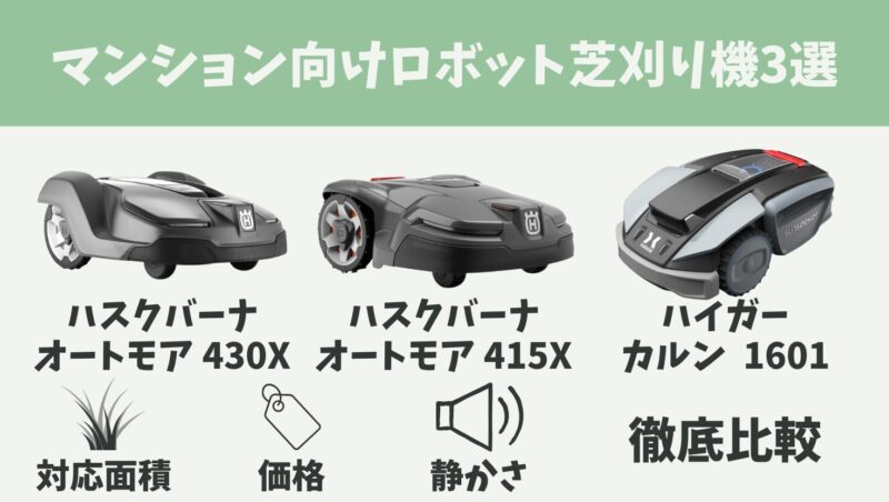 マンションに導入するのに最適なロボット芝刈り機を3つ紹介します。まずは比較表をどうぞ。