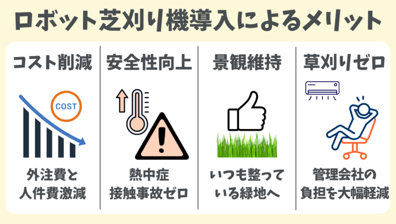 しかしロボット芝刈り機を導入すれば、次のような効果が期待できます。